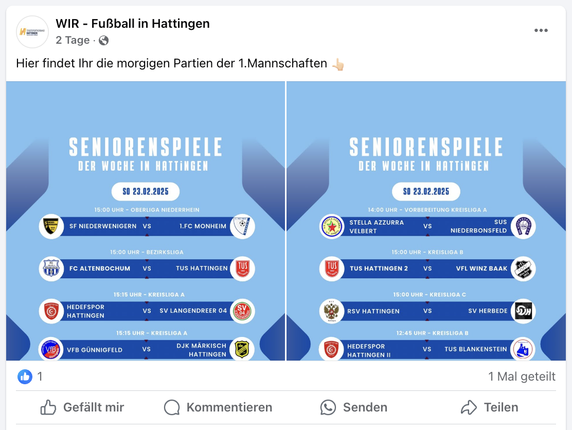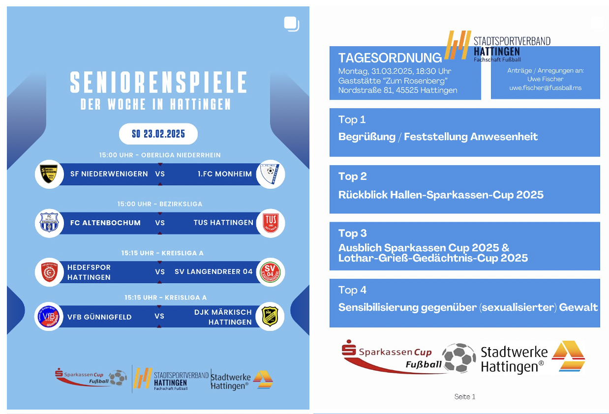Wir bringen den Fußball in Hattingen zusammen! Auf unserer Website findest du alle Hattinger Vereine unter einem Dach. Egal ob Spieler, Trainer, Fan oder Funktionär – hier erhältst du einen Überblick über den Fußball in unserer Stadt.